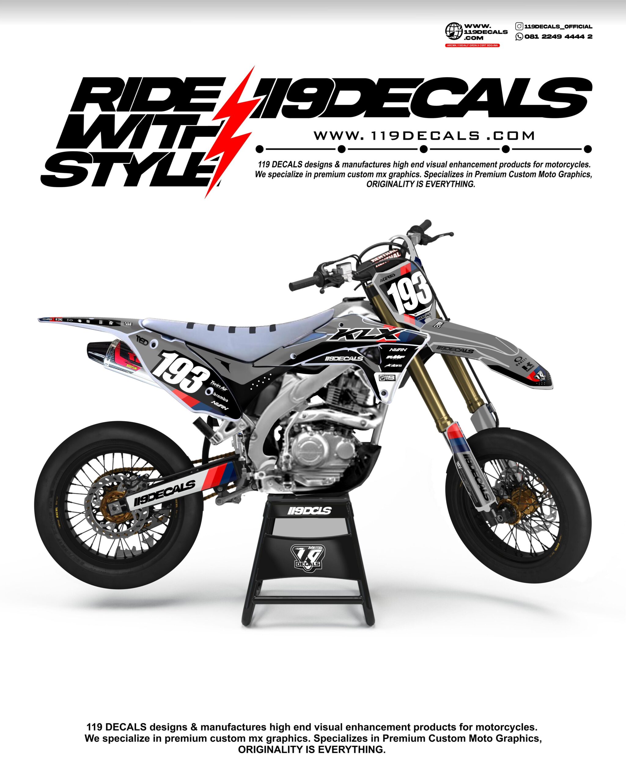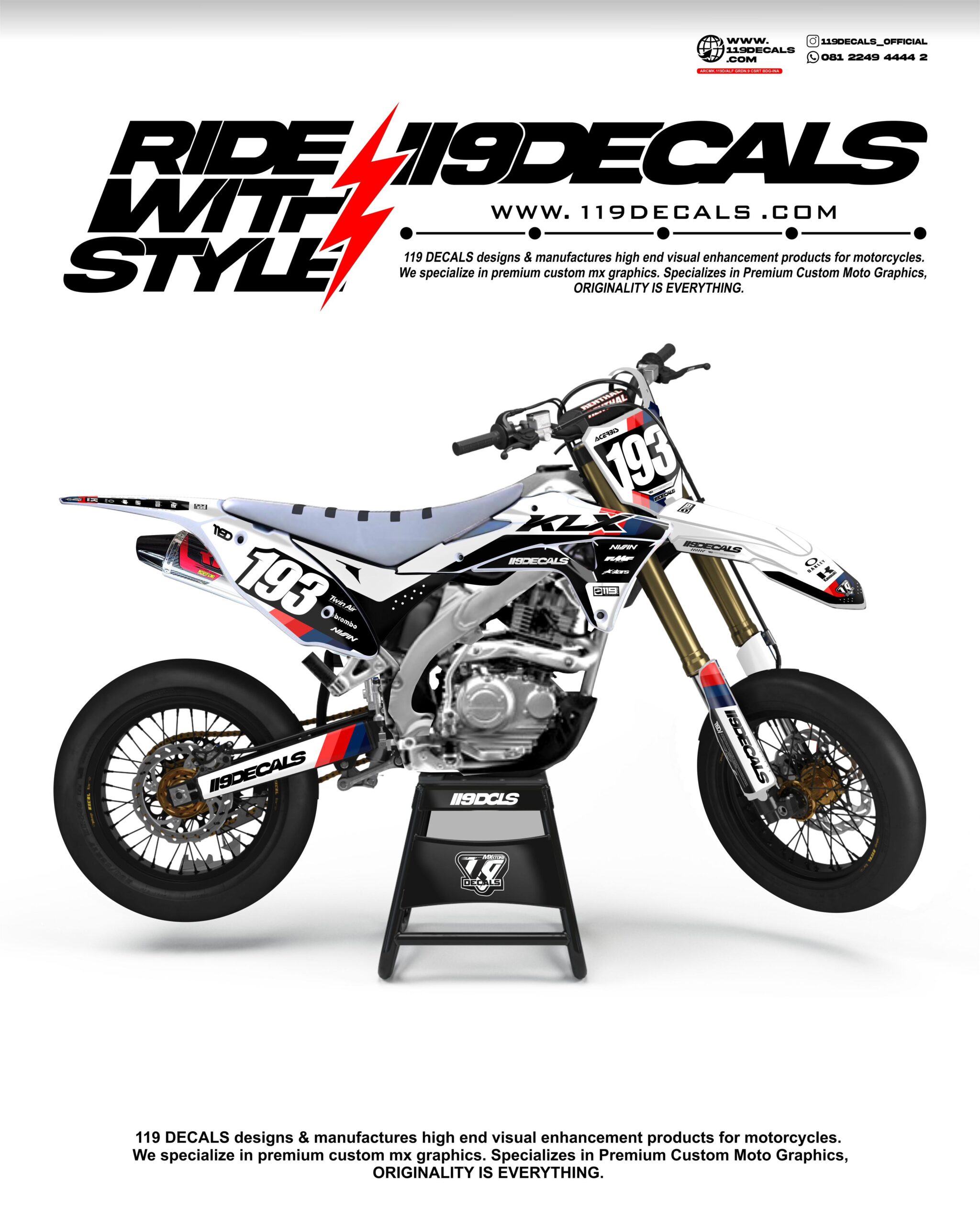 Design eksklusif terbaru original concept dari kami kali ini bertema “Crystal”. Kita mockup ke body motor CRF 150L, namun ini bisa diorder untuk semua jenis motor Boskuh. Untuk order Boskuh tinggal pilih Kualitas dan Jenis Laminasinya, lalu isi formnya, lalu klik PreOrder, View Cart, isi semua form dengan benar dan jangan lupa upload photo motornya. Jika masih ada yang belum mengerti bisa klik tombol Chat di WhatsApp untuk berkonsultasi langsung dengan admin kami.